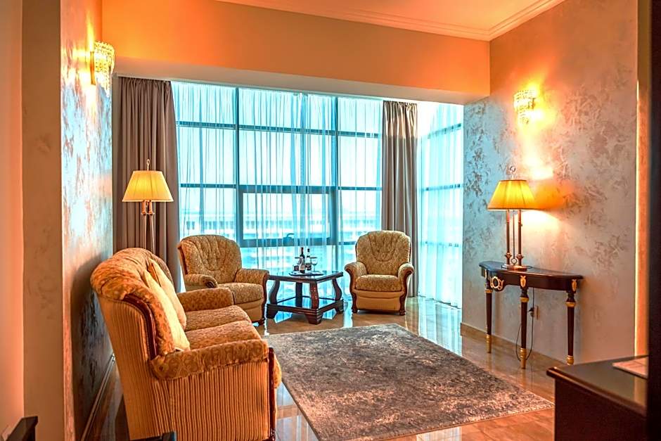 Large suite featuring a separate living room with a flat screen TV and a coffee machine. This room comes with a complimentary fruit basket, a bottle of red wine and a bottle of water.